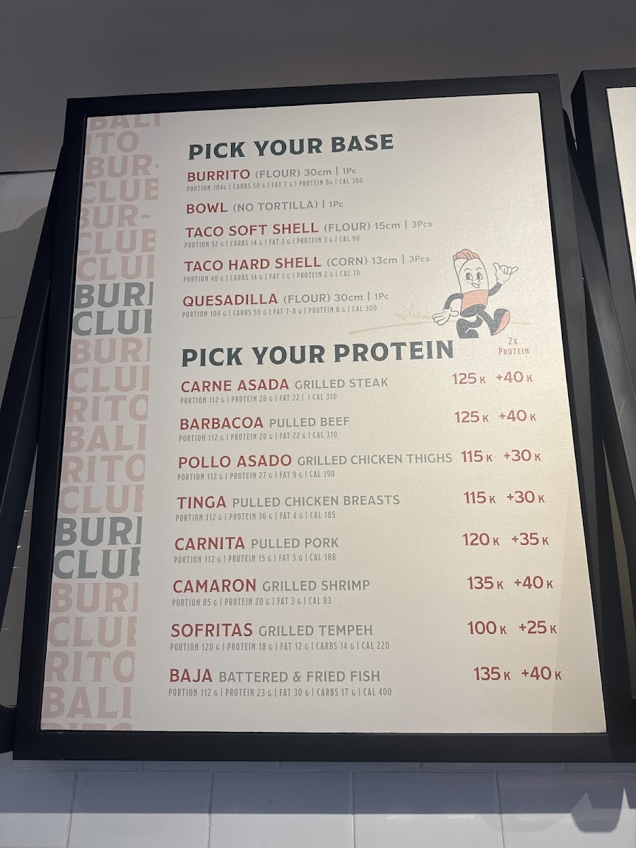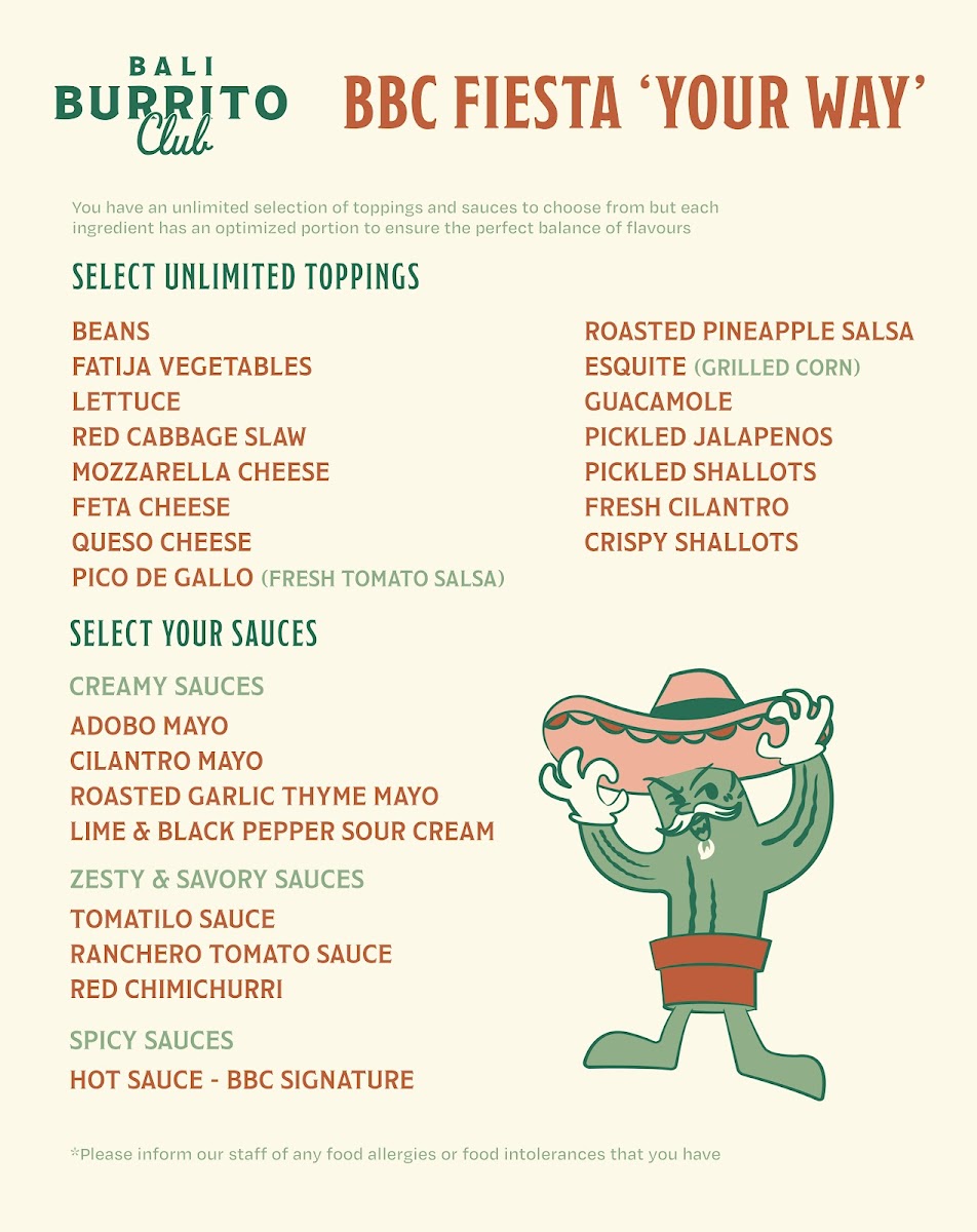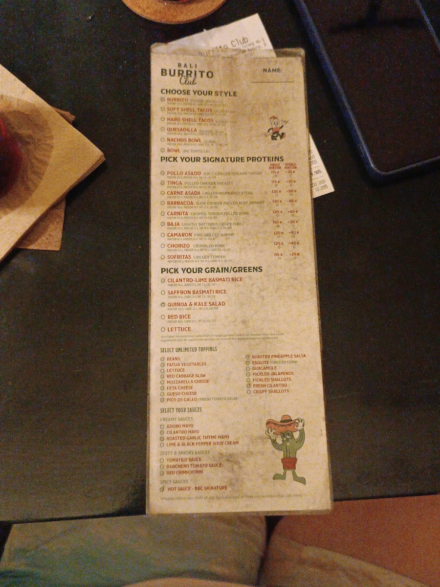 Bali Burrito Club | Mexican Restaurant Canggu Menu