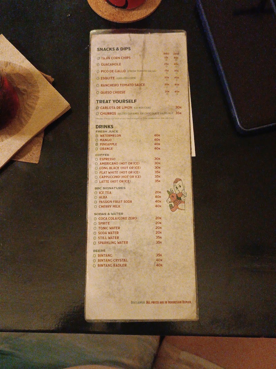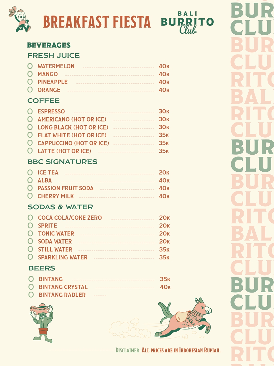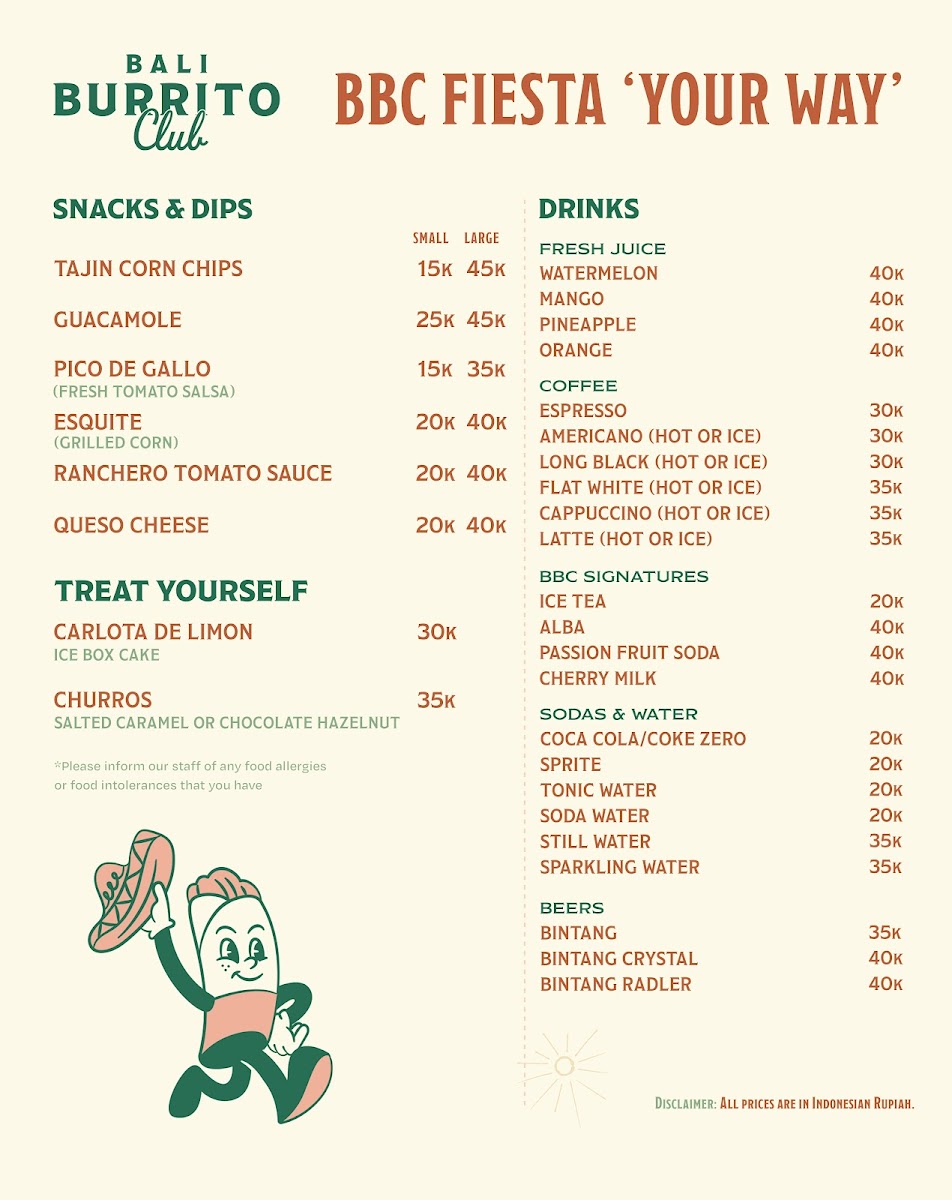 Bali Burrito Club | Mexican Restaurant Canggu Menu
